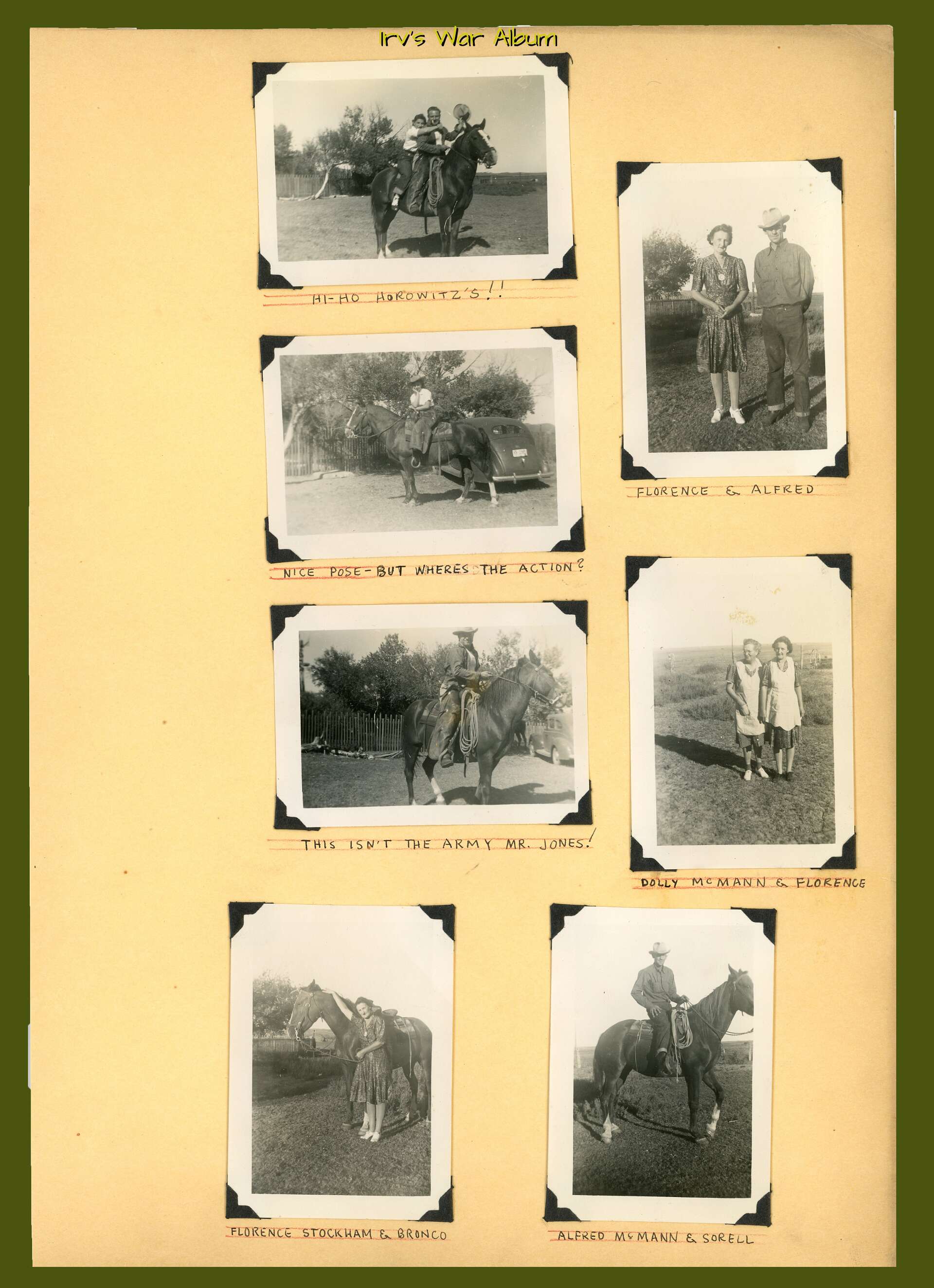 After Basic Training at Camp Claiborne the unit went to Alliance, Nebraska for maneuvers and where most of the glider photos in the previous section were shot. Irv & Dorothy spent some R&R at a nearby ranch.